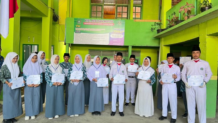 MAN 2 Sungai Penuh, 1 Oktober 2025. Upacara hari Kesaktian Pncasila di MAN 2 Sungai Penuh setelah mengadakan upacara Lima siswa-siswi dari Madrasah Aliyah Negeri (MAN) 2 Sungai Penuh menerima penghargaan dari MAN 2 Sungai Penuh karena berhasil lolos seleksi Olimpiade Madrasah Indonesia (OMI) tingkat Provinsi. Prestasi ini menjadi kebanggaan tersendiri bagi MAN 2 Sungai Penuh. Seperti yang kita ketahui Olimpiade Madrasah Indonesia merupakan ajang prestasi bergengsi untuk menyalakan semangat kreativitas dan prestasi siswa. Lima orang Siswa dan Siswi yang berhasil mewakili MAN 2 Sungai Penuh pada OMI Tingkat Provinsi adalah